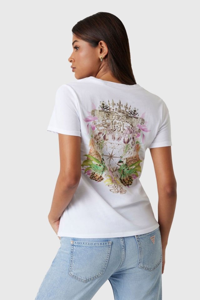 Guess Ss Naturescape Baskılı Regular Fit Bisiklet Yaka T Shirt Beyaz